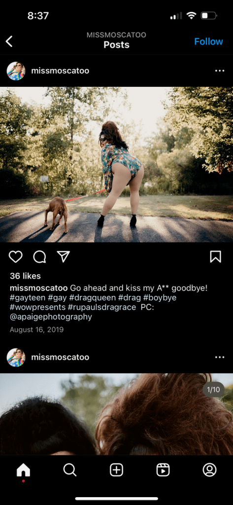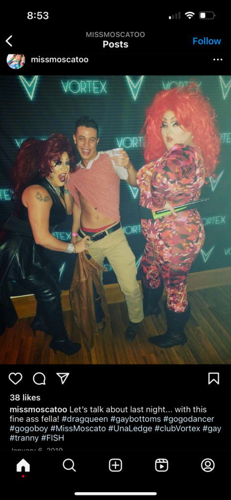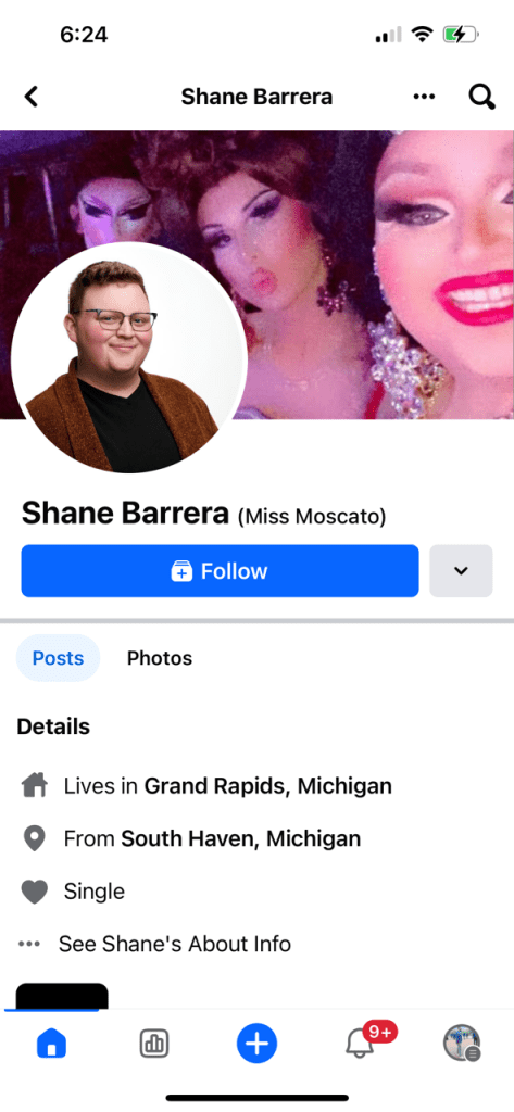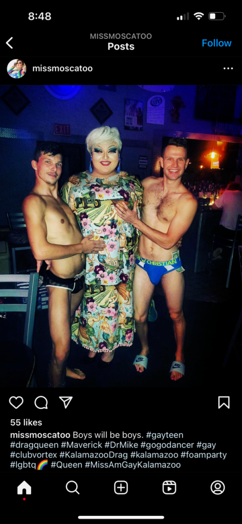 Shane Barrera, who goes by the stage name Miss Moscato, is set to be the main performer and host at R Bar’s drag brunch. Barrera, who is based out of the Grand Rapids, Michigan, area, has dozens of pictures and videos of his drag persona on Instagram where he is dancing provocatively with very young looking males in only their underwear. Several of the videos show Barrera mimicking sexual acts. He also frequently references “boys” and “gay teens”, as well as sexual acts such as “bottom boy” in his posts.