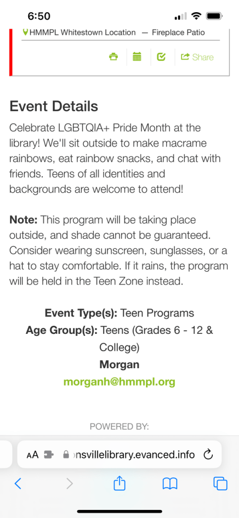 Once again, the description goes on to describe the event as part of the library’s “Teen Programs” with children and young adults (Grades 6-12 & College) invited to attend.