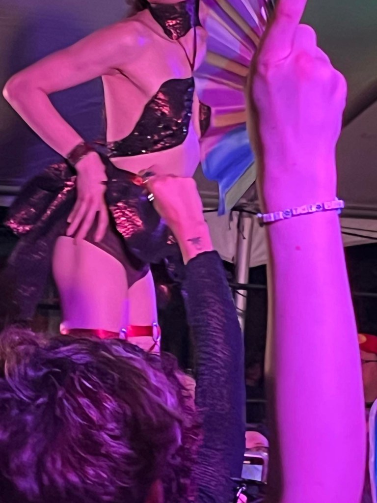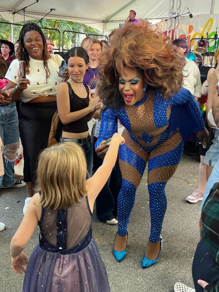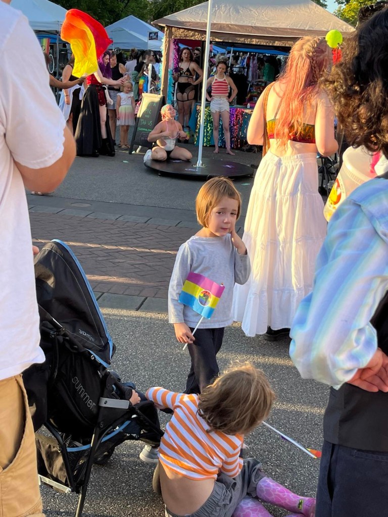 Several pictures provided to REAL News show children watching actual strippers dance on a pole as well as tipping sexualized drag queens. Children were also allegedly offered balloon animals by a drag queen dressed as a clown.