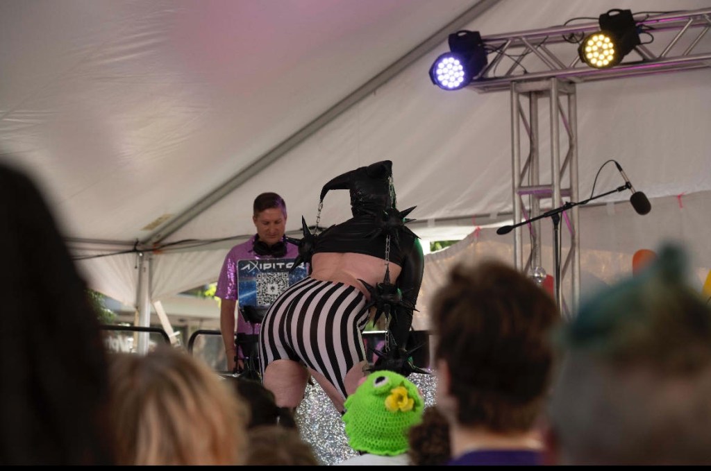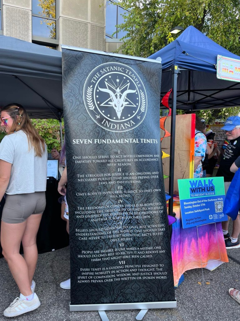 The event also included several vendors and information booths for organizations such as Kelley School of Business, Bloomington Kink, The Satanic Temple, Planned Parenthood and a group of “moms” giving out “free hugs”.